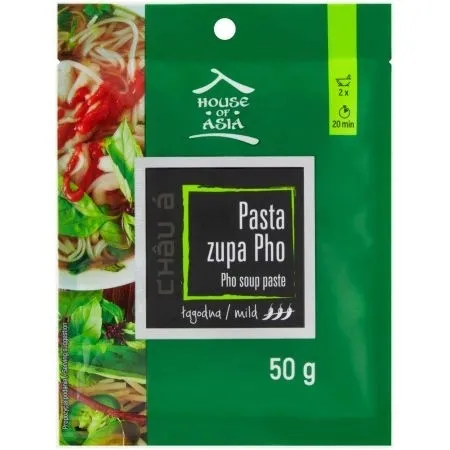 Zupa Pho to tradycyjne i bardzo popularne wietnamskie danie. Składa się z bulionu, makaronu ryżowego, dodatków mięsnych bądź warzywnych i świeżych ziół. Pasta składa się między innymi z mieszanki aromatycznych przypraw i stanowi bazę do jej szybkiego przygotowania w domu.